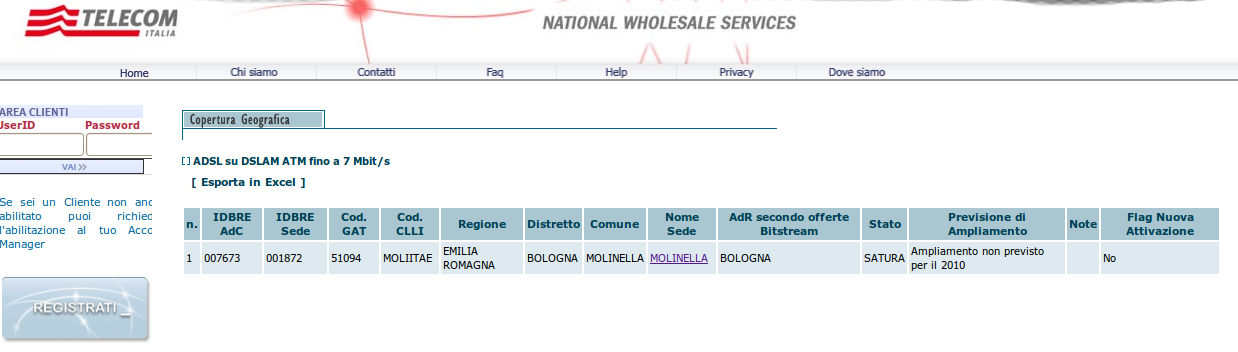 Allora si parlava delle frazioni senza ADSL. San Pietro Capofiume (Alberino), Selva Malvezzi, San Martino in Argine e Marmorta che hanno una penosa 640K mini.